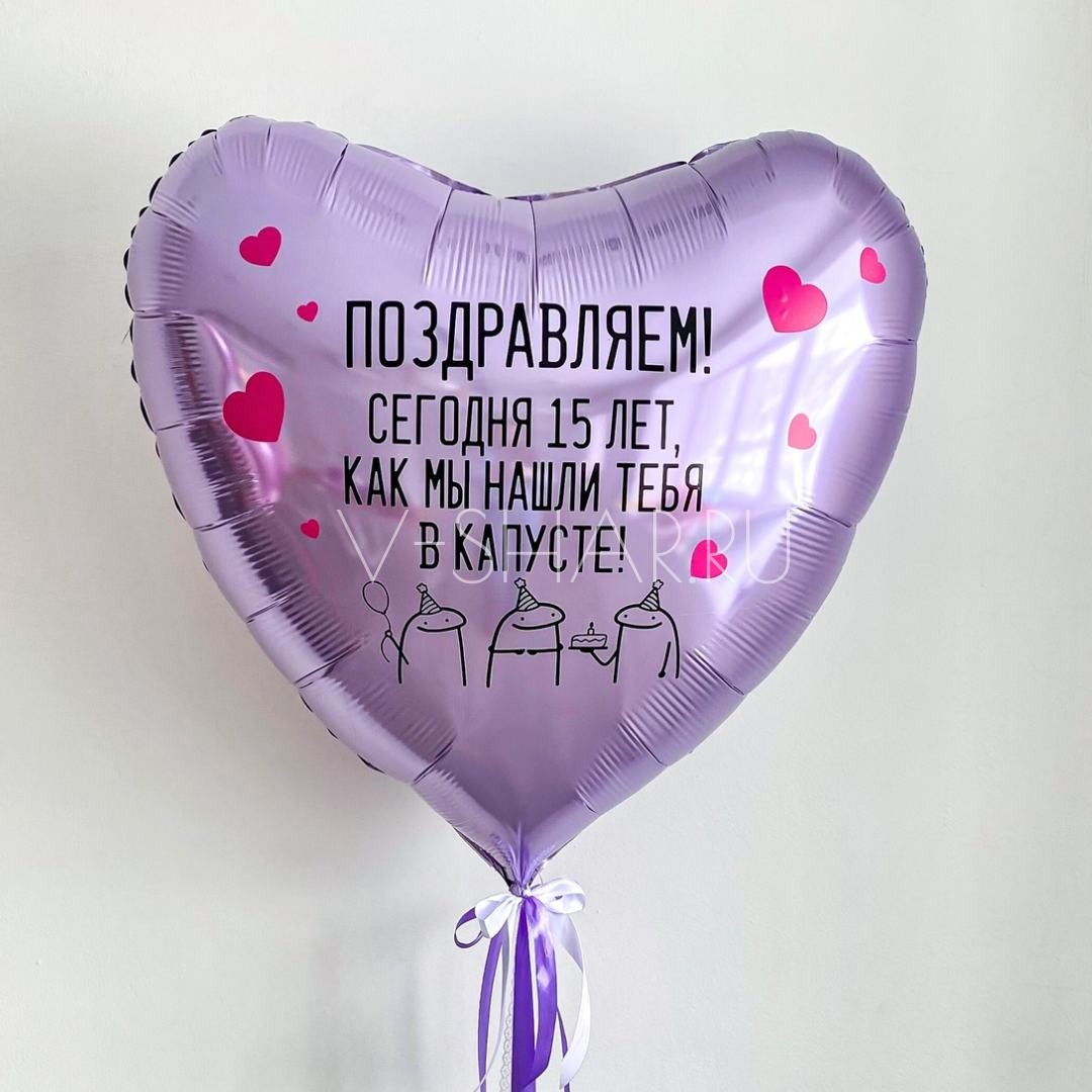 Фольгированный шар в форме сердца с гелием и индивидуальной надписью.