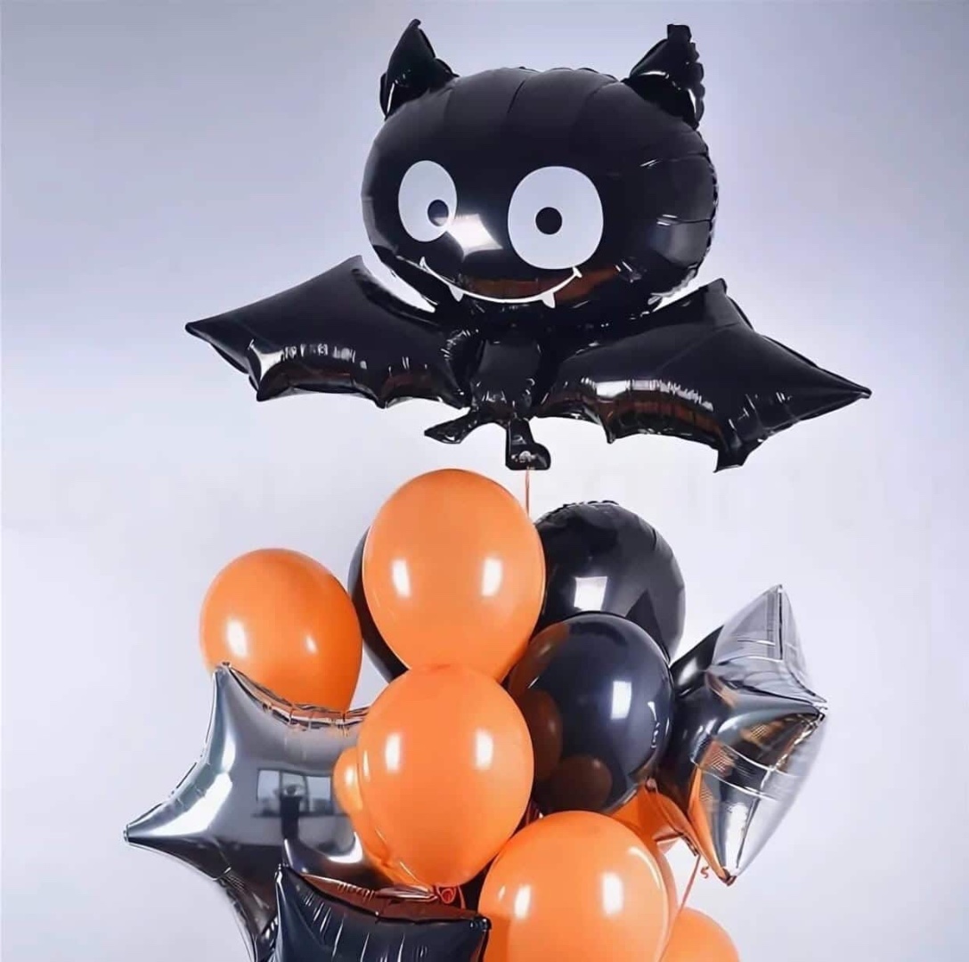 - 8 латексных шаров 30-35 см (5 оранжевых пастель, 3 черных пастель)