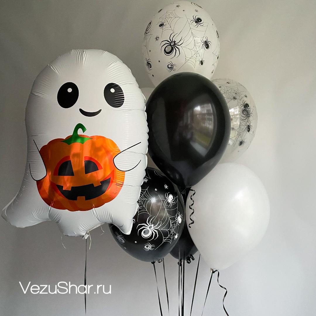 - фонтан из 7 шаров ( 3 шара пауки, 2 белых пастель, 2 черных пастель)