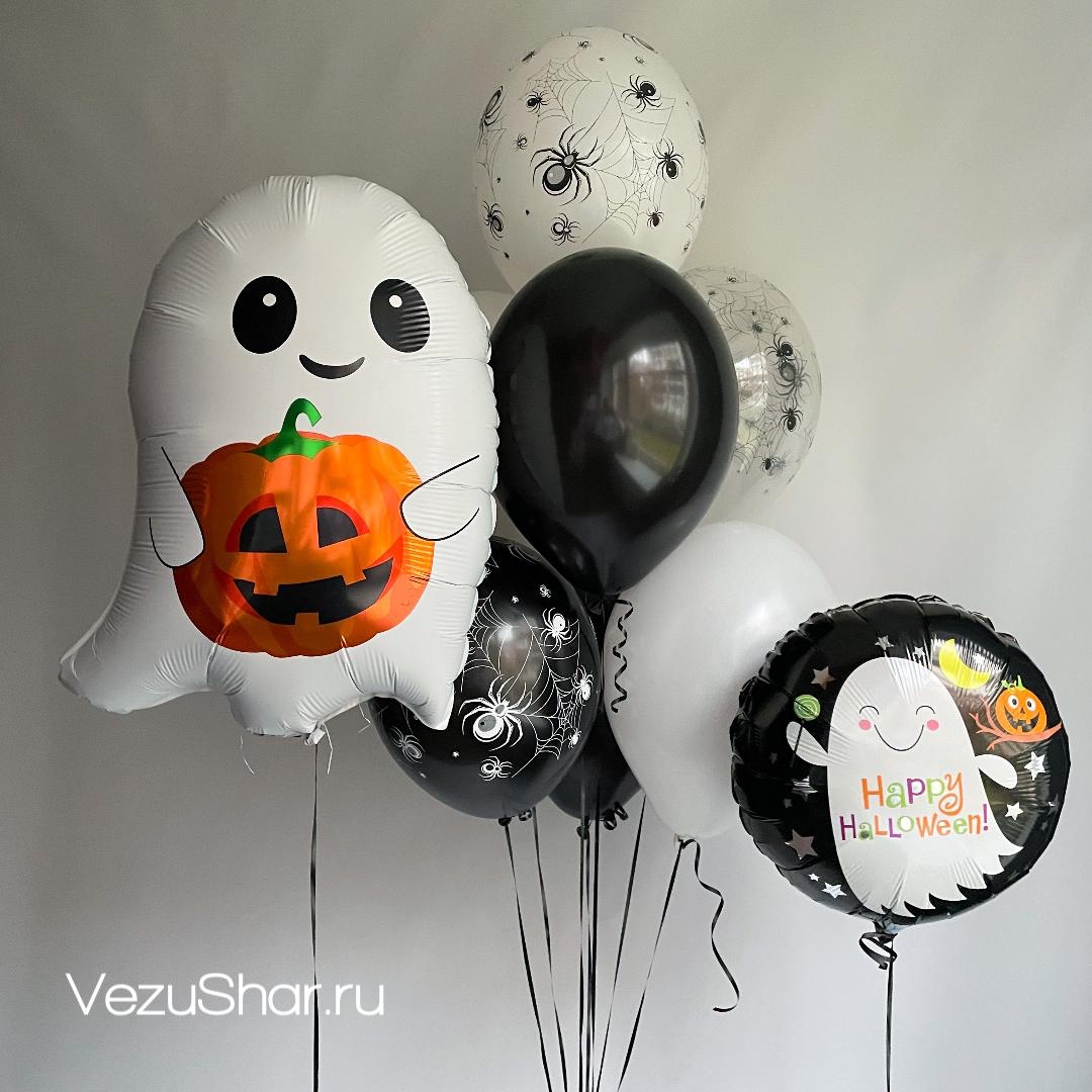 - фонтан из 7 шаров ( 3 шара пауки, 2 белых пастель, 2 черных пастель)